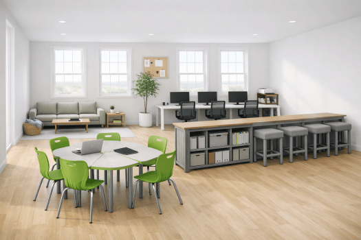 What if one space could support individualized learning, small group lessons, and a strong sense of community—all within a smaller footprint?Thanks to ClearSpace Design, we were able to take our ideas and translate them into an inspiring vision—one that shows how a thoughtfully designed space can feel both functional and welcoming, while supporting the way students learn, connect, and grow.